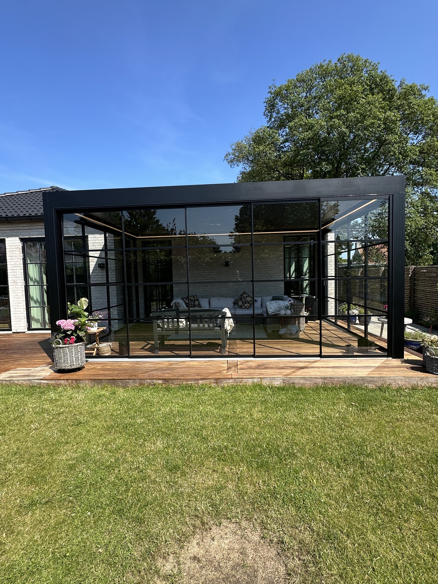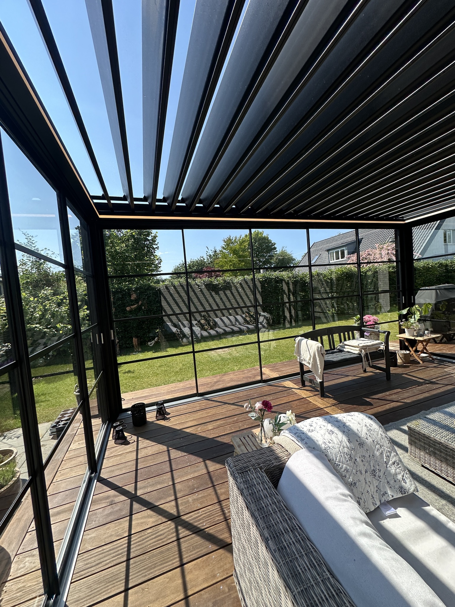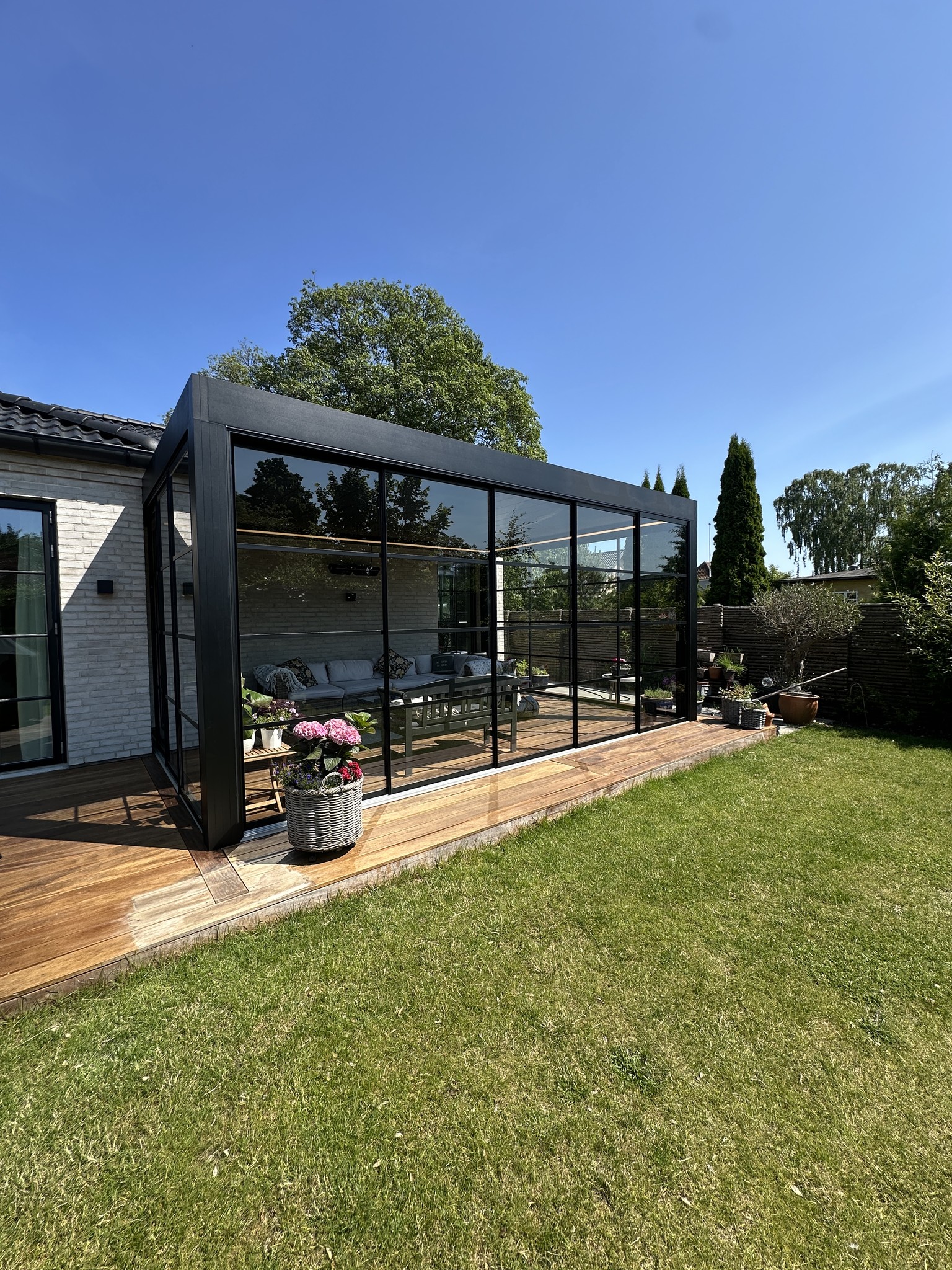 Her ønskede kunden at få masser af naturligt lys ind, men samtidig kunne sidde ugeneret af solen.